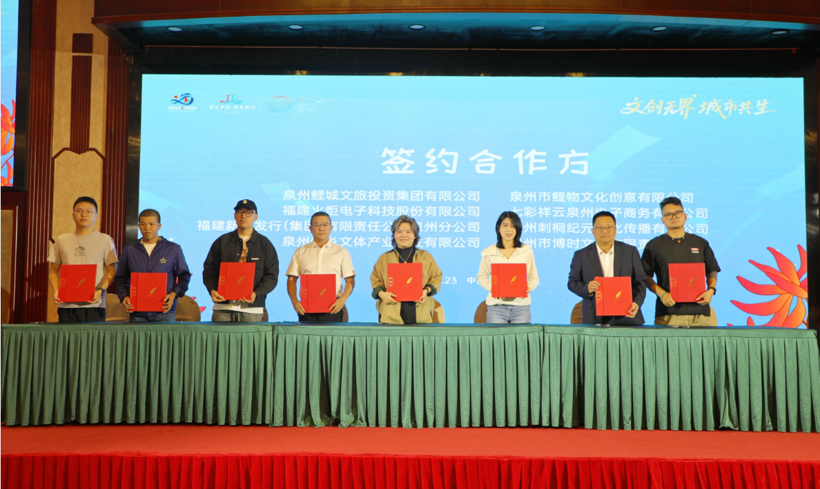 推介會現場捷報頻傳,當天共簽署訂單金額超500萬元,實現“開門紅”。福建火炬電子科技股份有限公司、福建新華發行(集團)有限責任公司泉州分公司、泉州僑鄉文體產業開發有限公司、泉州市鯉物文化創意有限公司、七彩祥云泉州電子商務有限公司、泉州刺桐紀元文化傳播有限公司、泉州市博時文創有限責任公司等完成首批訂貨簽約。